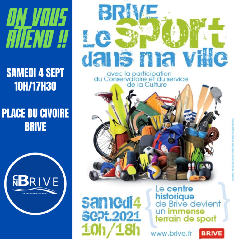Nous serons présent à Sport dans ma ville, le samedi 4 septembre 2021, place du ivoire à Brive.