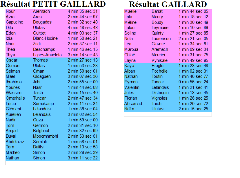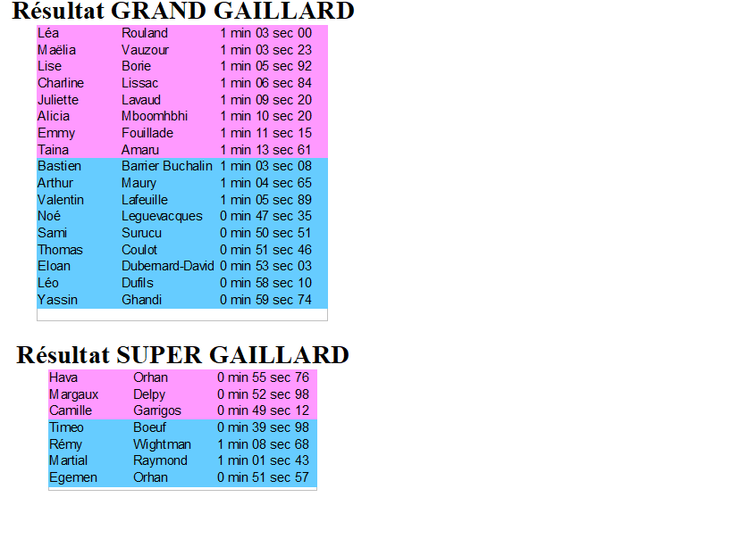 - GA1 mardi : Niveau Gaillards